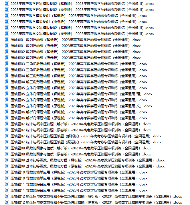 2023年高考数学压轴题专项训练(全国通用) 高考专栏 1.2k 2023年高考数学压轴题专项训练(全国通用) 简介:在高考中,压轴题一般难度大,综合性强,能够拉开考生成绩的差距,是很多学生和老师重点钻研的项目。《压轴题专项训练》系列通过剖析高考压轴题,系统总结各种压轴题题型,归纳其基本解题技能、思想和方法等,进而把压轴题解法简单化、模式化、规范化,并精选真题和模拟题供演练,助力学生吃透压轴题! 资源下载下载价格VIP专享仅限VIP下载升级VIP请先登录开通会员可畅享全站资料免费下载,限时优惠活动正在进行中。 有任何疑问请联系客服(微信):xbt648