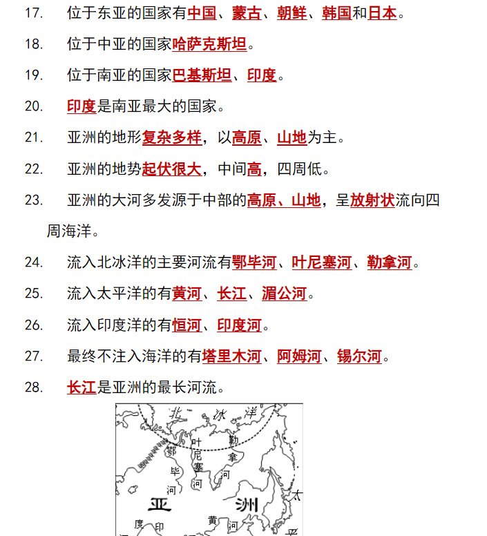 亚洲所临大洋:东临太平洋,北临北冰洋,南邻印度洋。