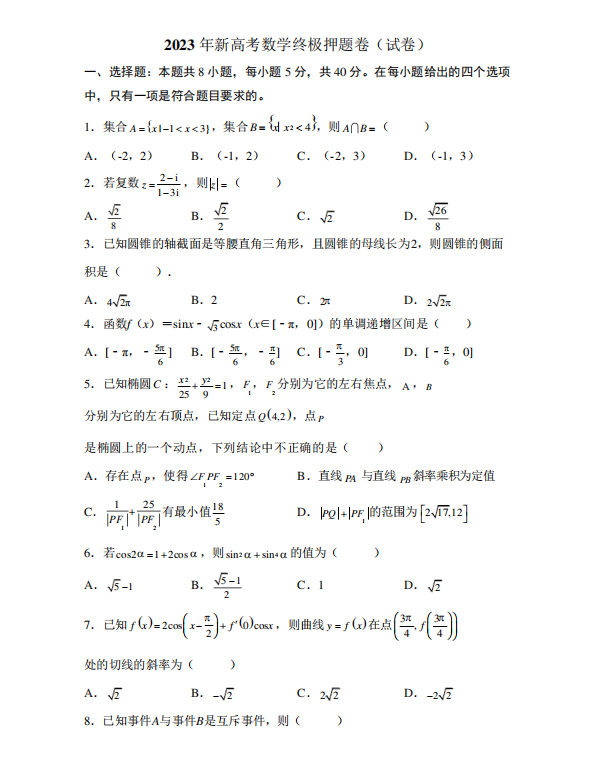 2023年新高考数学终极押题卷(含解析)(PDF) 高考专栏 1.2k 2023年新高考数学终极押题卷(含解析)(PDF) 资源下载下载价格VIP专享仅限VIP下载升级VIP请先登录开通会员可畅享全站资料免费下载,限时优惠活动正在进行中。 有任何疑问请联系客服(微信):xbt648